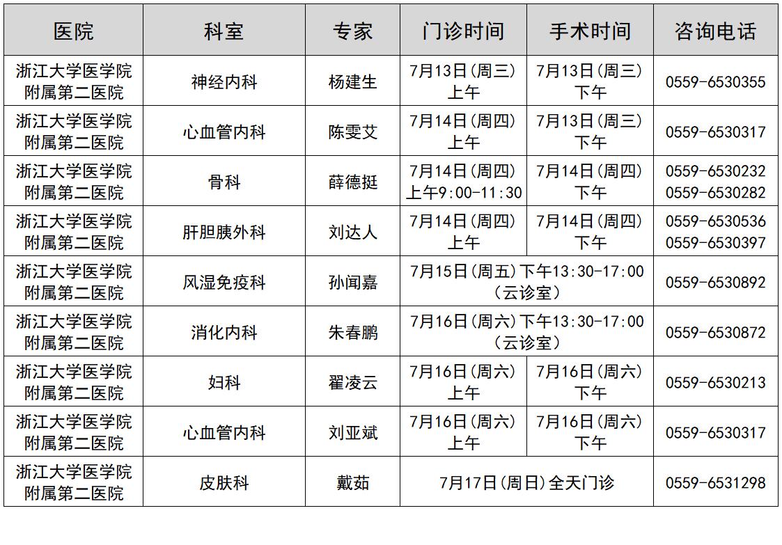 歙医医讯 | 浙大二院歙县分院专家出诊安排(2022年7月第二周)