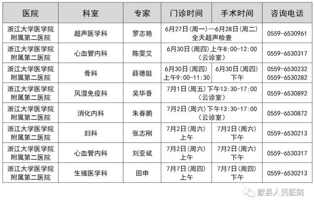 歙医医讯 | 浙大二院歙县分院专家出诊安排(2022年6月第五周)