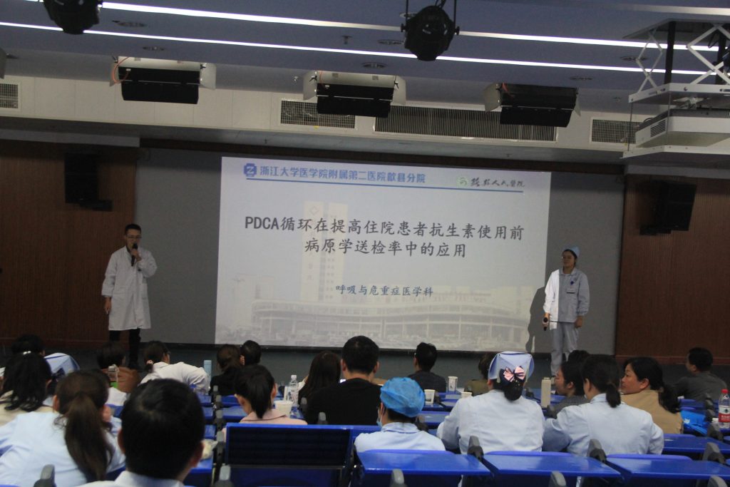 经过激烈的角逐,13个代表队脱颖而出,其中本部麻醉科的两名选手针对无菌物品管理存在问题进行PDCA分析,内容紧扣主题、汇报精彩,当仁不让摘得金牌;呼吸与危重症医学科、三病区、十病区、深渡中心卫生院获得二等奖;五病区、门诊部、四病区、十六病区、十四病区、检验科、口腔科、杞梓里中心卫生院获得三等奖。比赛结束后,院领导对获奖团队及选手进行颁奖。
