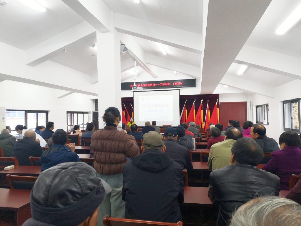 县级巡讲专家、糖尿病专科护士、内分泌科护士长汪杏华为在场的居民进行《糖尿病健康饮食》主题讲座。她凭借自己多年来丰富的临床经验结合身边的实际案例分享了饮食控制的目的、制定个性化饮食处方、常见饮食误区和中医食疗等四个板块进行讲解,语言生动形象通俗易懂,很受居民欢迎。内分泌科主任吴志勇在义诊现场给与患者健康咨询,旨在提醒人们重视预防糖尿病的重要性,同时强调该病对生活的影响,并鼓励人们改善生活方式以预防和管理糖尿病。