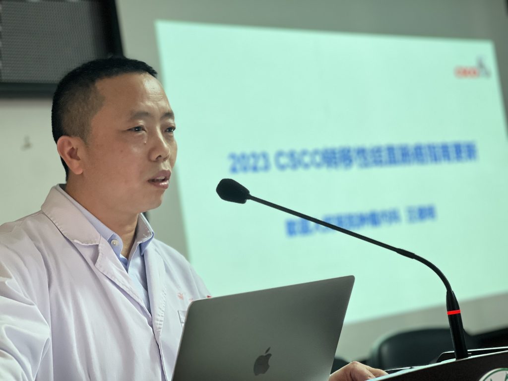 在接下来的学术交流环节钟,888集团官网址肿瘤内科副主任医师朱聪颖就《国民健康管理促进项目-肿瘤规范化防治能力提升案例征集活动方案》进行详细介绍;肿瘤内科副主任、主任医师汪德明就《2023 CSCO转移性结直肠癌指南更新》解读》进行专题报告;肿瘤内科副主任医师张虹针对肠癌病例进行分享。另外,普外科、血液内科、肿瘤内科其他同道们就肠癌指南及病例内容进行了深入探讨,会议学术氛围浓厚。