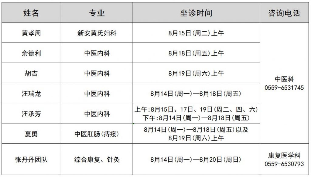 歙医医讯 | 888集团官网址新安中医非遗馆及康复诊区出诊安排(2023年8月第三周)